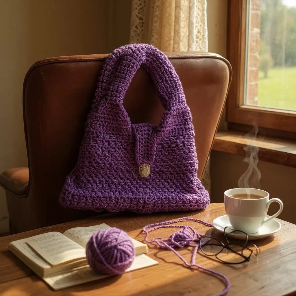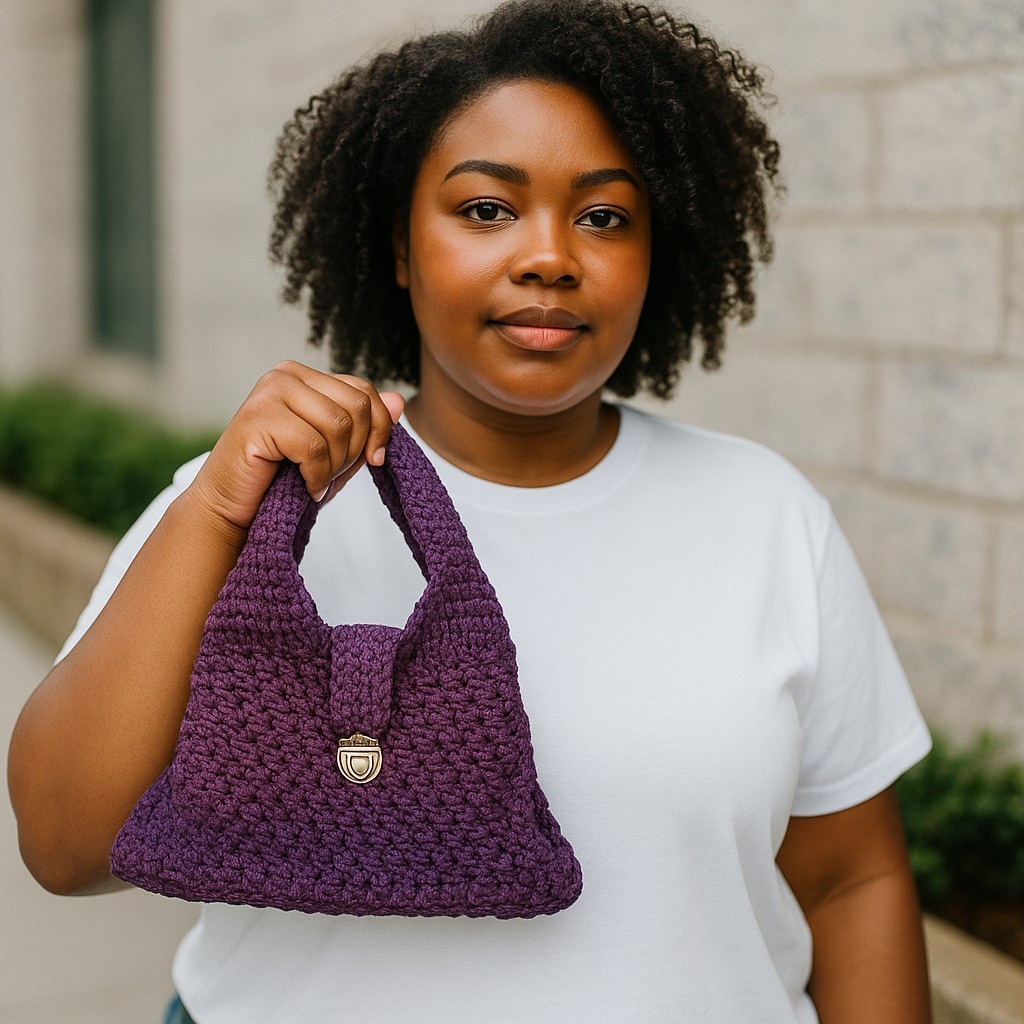 Bolso de Mano Crochet Morado, Artesanal y Elegante en Poliéster