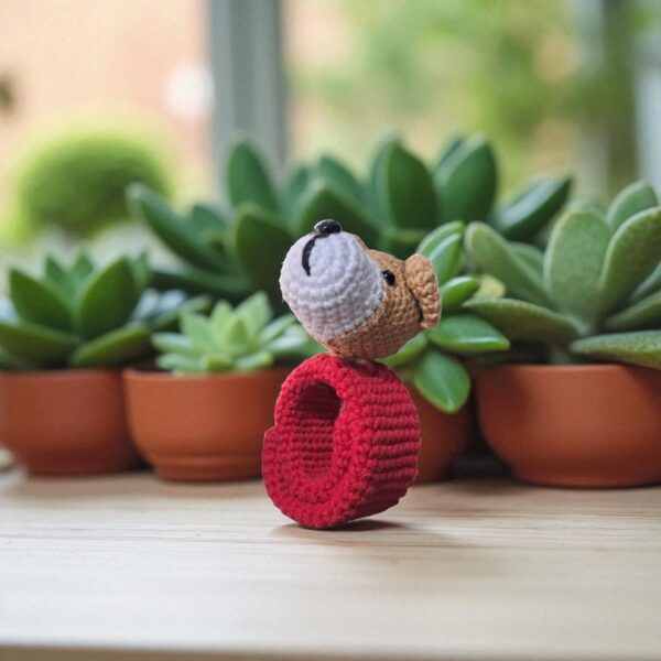 Pulsera de Crochet Roja – Osito Aventurero (22 cm)